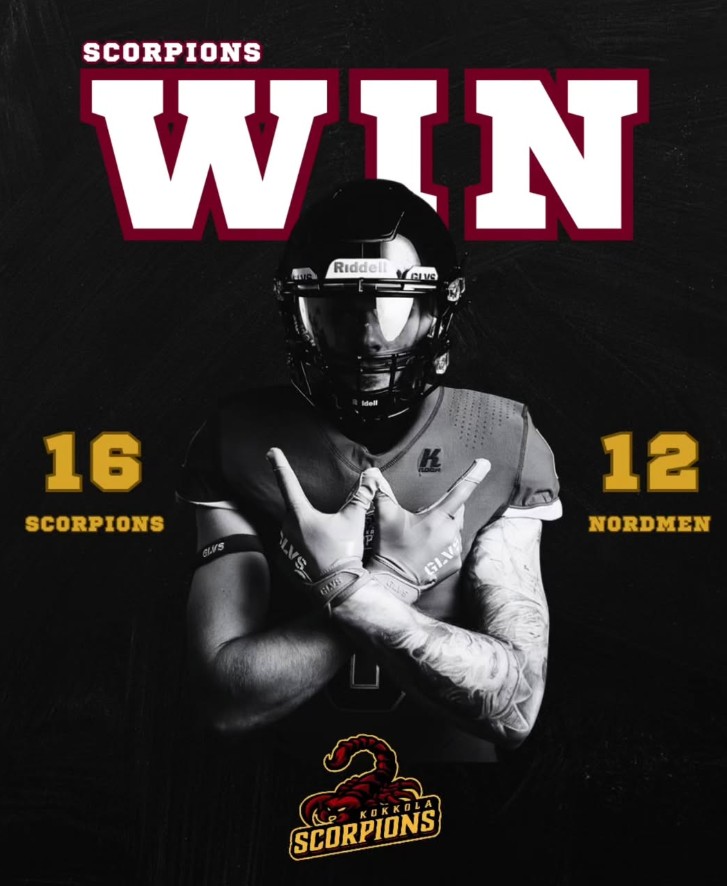Kokkola Scorpions otti tärkeän 16–12 voiton amerikkalaisen jalkapallon II-divisioonan kärkikamppailussa Rovaniemi Nordmeniä vastaan lauantaina 14.6.Kirkonmäen kentällä.Ottelu tarjosi yleisölle juuri niin tiukan taistelun kuin odotettiin kahden ennakkosuosikin kohtaamiselta.